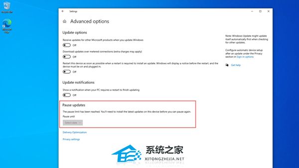 点击“高级选项”后,系统会提示设备“已达到暂停限制”。