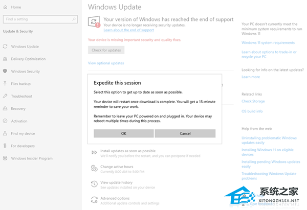 系统之家 12 月 15 日最新消息,Windows 10 已于 2025 年 10 月 14 日结束官方支持,微软仅向加入 ESU 计划的设备提供后续安全补丁。即使此前未使用过暂停功能,用户仍会收到“已达到暂停限制”的提示,并在下方新增了一个“尽快安装更新”按钮。