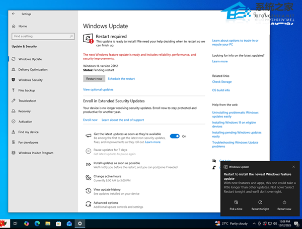 更令人担忧的是,点击“尽快安装更新”后可能会触发连锁反应。测试显示,该操作不仅可能无法获取新的安全补丁,反而会将原本的“加入 ESU”选项替换为 Windows 11 版本 25H2 的“下载并安装”提示。