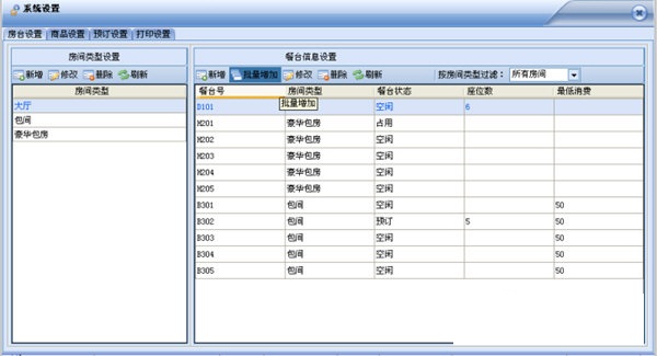 点击右侧餐台信息设置下的【新增】按钮,启动增加餐台信息窗口。