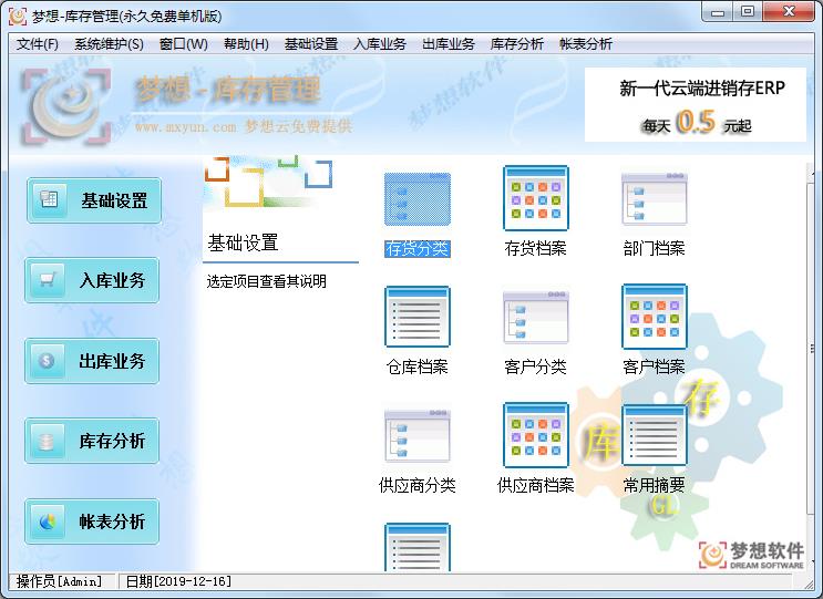 梦想库存管理软件是款相当优秀的库存管理工具,软件能够满足各类小微型企业、个体户的库存基本管理需求,软件界面简洁美观、易用,可管理采购、销售、库存业务,帮助企业快速建立基础管理程序,轻装出发。