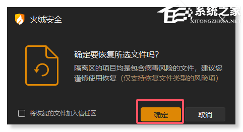 点击确定按钮后,会有“文件提取完成”提示,电脑对应文件夹内会有相应的隔离区文件。