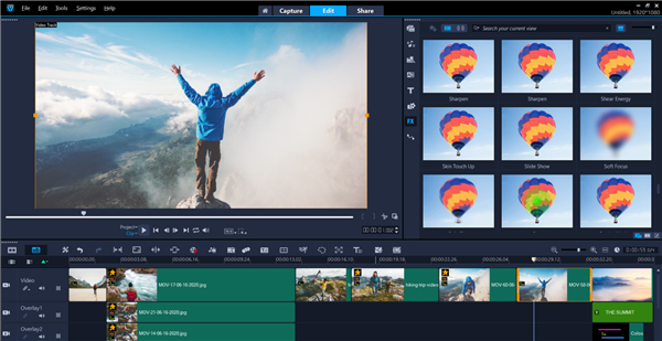 其趣味性强,功能强大,简单易用,备受推崇,可以让您掌握各种精深的编辑功能,打造难以置信的精彩效果。利用独家提供的创意附加工具和强大功能,让您的项目设计水平更上一层楼。利用 2000 多种独有的可定制效果、滤镜和全新的覆叠,或通过各种动态效果和酷炫动态标题让故事情节更加鲜活生动。使用时尚 AR 贴纸增加趣味性,并使用全新的即时项目模板简化编辑过程。利用独有工具制作自定义视频遮罩和过渡,应用色彩分级调整或使用动态分屏视频同时显示多个视频,这些功能只是旗舰版出色功能中的一部分。可提供您需要的所有功能,超越基本视频校正并获得高质量的效果。该产品适用于所有视频编辑人员 - 无论您是视频编辑新手还是身经百战的资深人员!