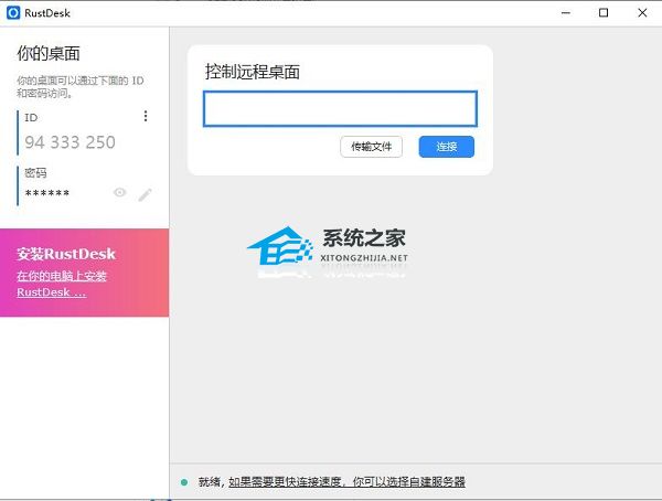 首先打开软件,点击软件界面左侧的安装RustDesk。