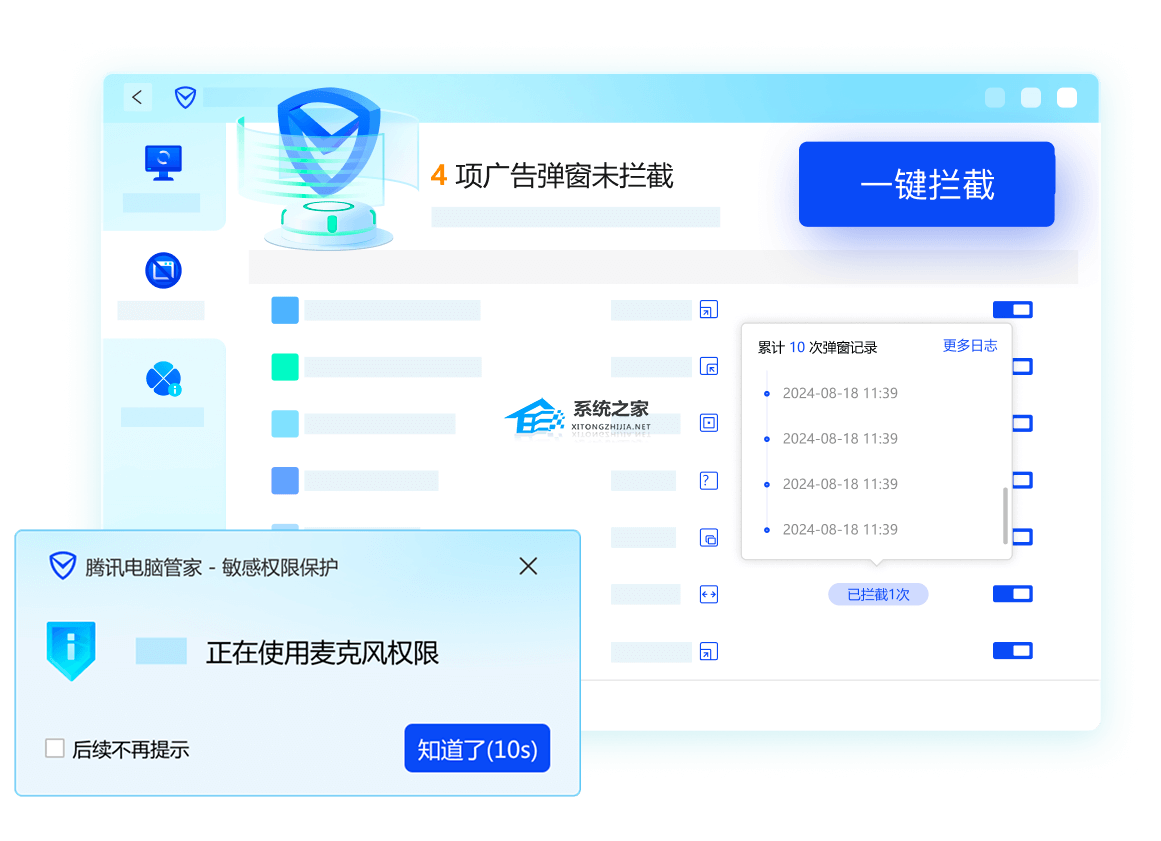 自由设置软件权限,拦截能力再加强,纯净体验无烦扰。