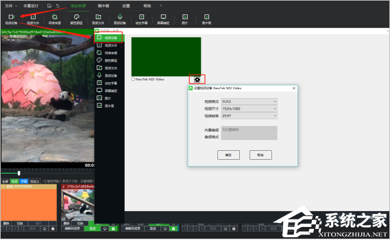 点击设备右下角的【设置】图标,可设置设备的输入参数(格式、尺寸、帧率、音频)。