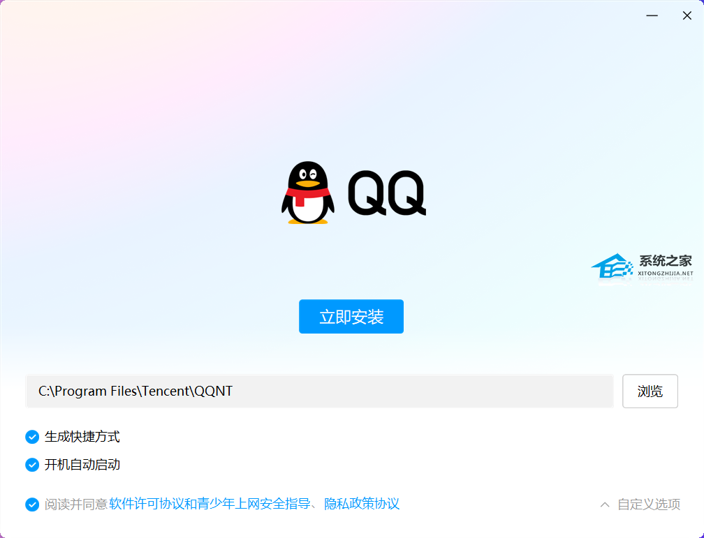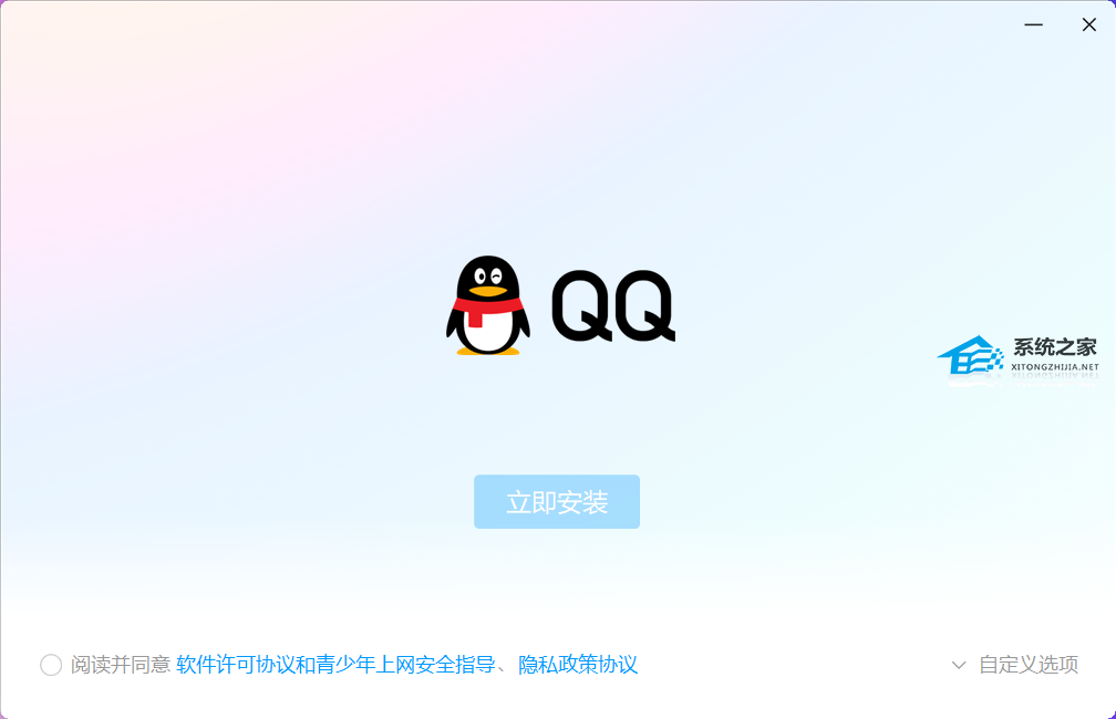 1. 从系统之家下载腾讯QQ软件包,双击进入安装向导,单击右下角【自定义选项】。