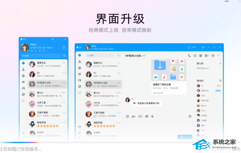新版本上线了“经典模式”,并对效率模式进行了更新,两种模式可自由切换。除此之外,新版本还支持合并独立聊天窗口。