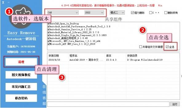 easy remove是专为卸载Autodesk软件的工具,支持Autodesk的所有产品,具备操作简单、速度快、卸载完全等等特性。软件操作简单,一键卸载,支持单独卸载,多个版本之间清理互不干扰,短时间内即可解决Autodesk系列软件安装残留问题。