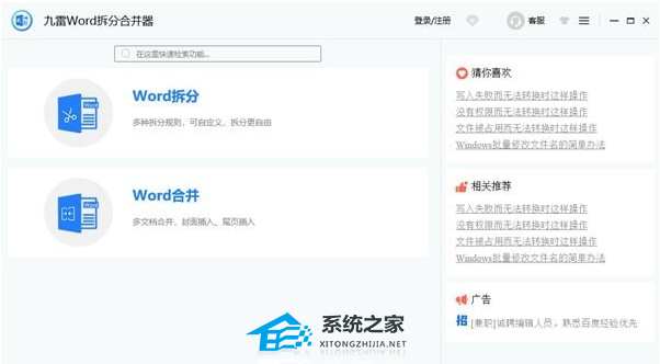 1. 在系统之家下载九雷Word拆分合并器压缩包,解压到电脑桌面上。