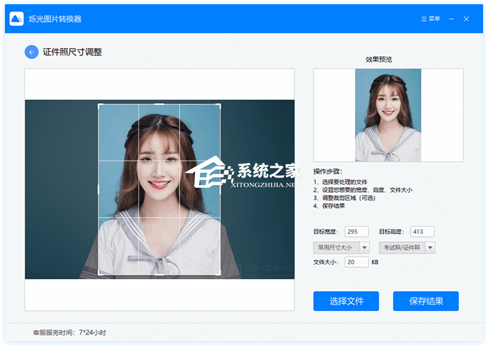 自定义裁剪图片,内置证件照尺寸,指定证件照类型、大小输出,报考无忧。