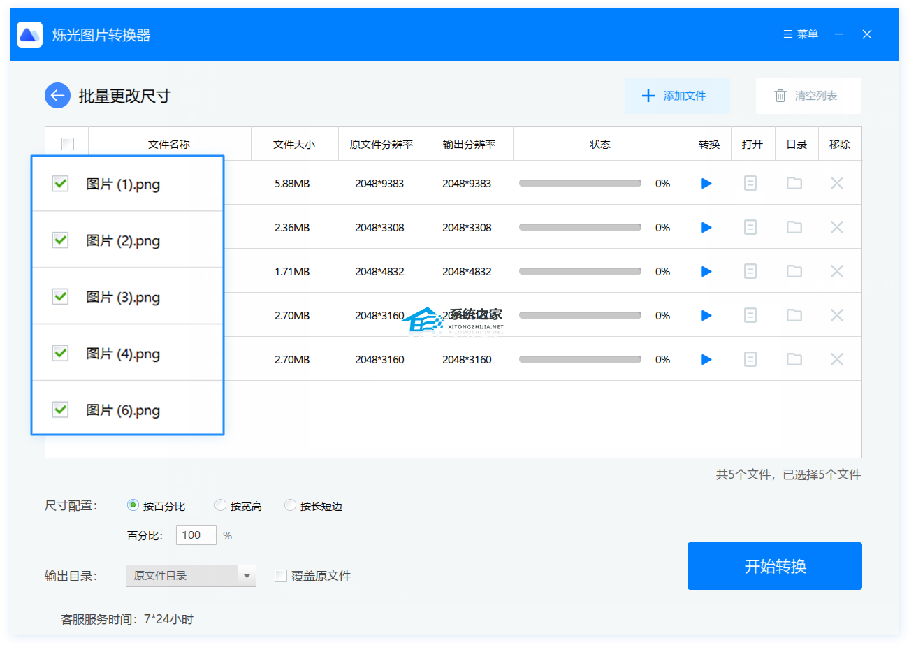 大批量图片一次性修改尺寸,支持多种配置:指定尺寸比例、指定宽高、指定长短边。