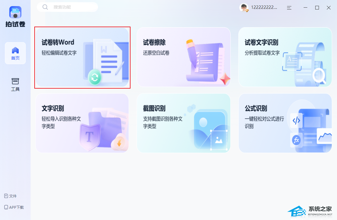 在系统之家官网下载并安装拍试卷,打开拍试卷软件。