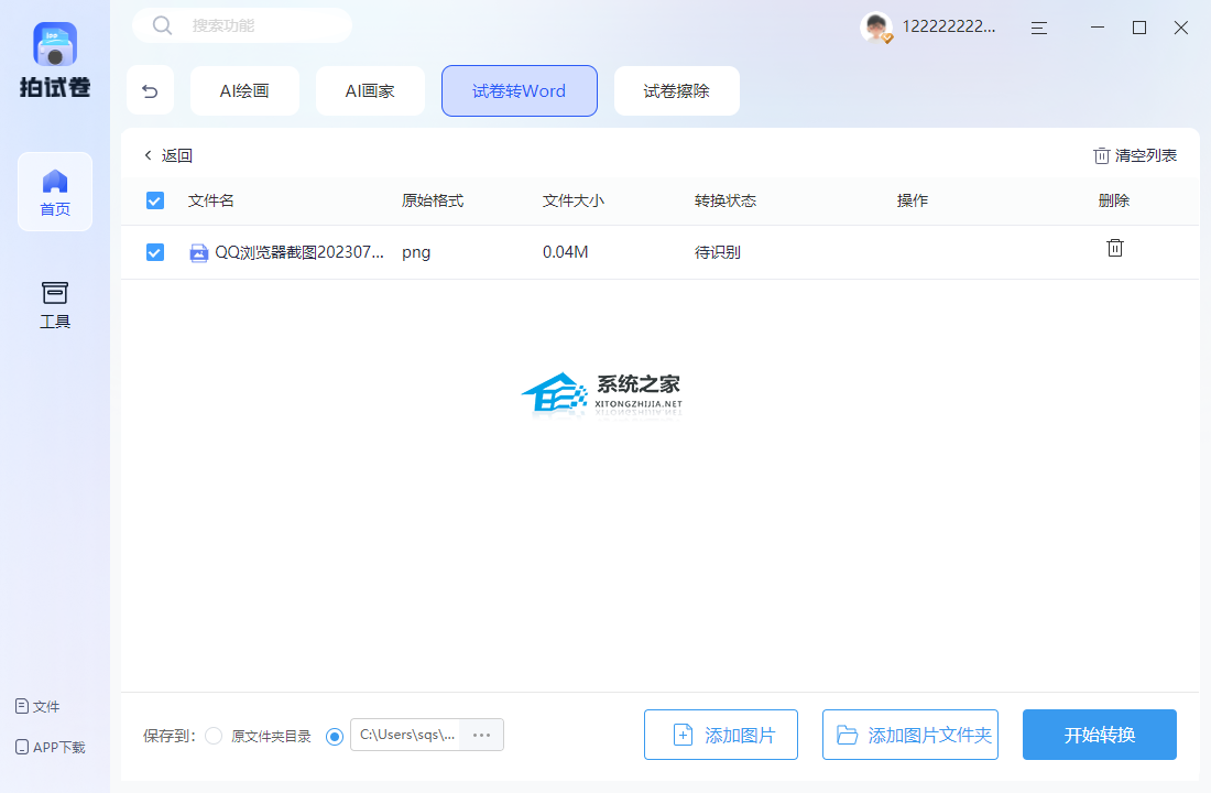 拍试卷是一款便捷实用的学习工具,该工具操作简便,上手快,提供了试卷转Word、试卷擦除、拍图识别、拍图翻译等实用功能,旨在为用户在教学或者学习中提供便利。以上就是系统之家小编今天为大家带来的拍试卷,想要下载更多软件就在系统之家官网!