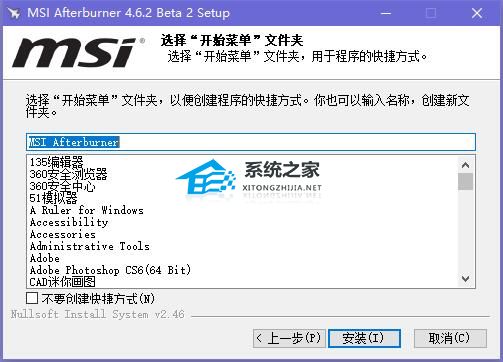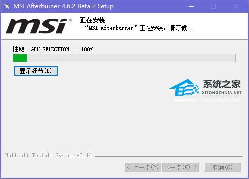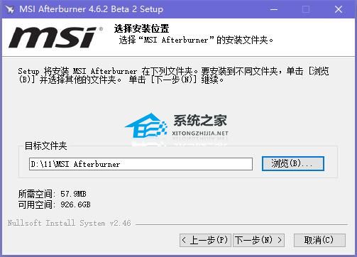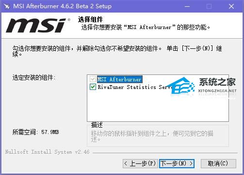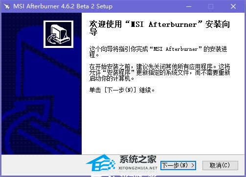 1. 在系统之家下载MSI Afterburner软件,解压之后双击.exe,出现一个安装向导界面,点击“下一步”继续。