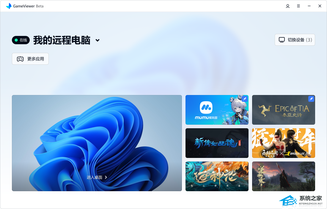 2. 在另外一台设备(Windows/Mac/iPhone/Android)启动GameViewer,登录与步骤1相同的账号。