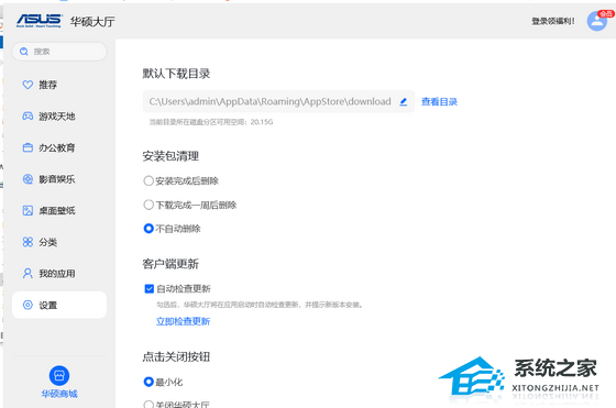 华硕大厅下载的软件怎么放到 D 盘?