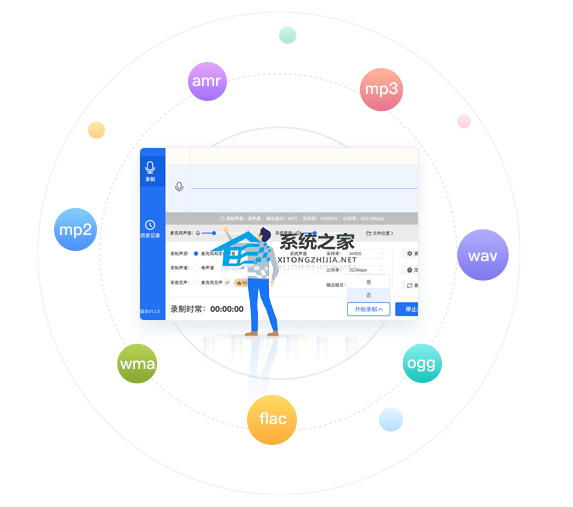 支持多种音频格式的录制,mp3、wav、ogg、flac、mp2、m4a、m4r、ac3、amr、wma等格式。