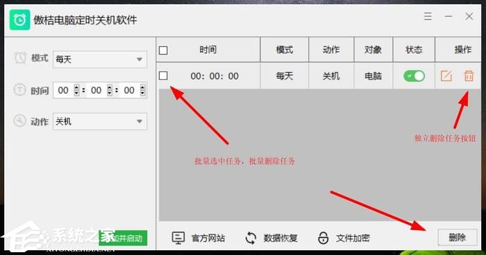 可独立删除某一个任务或在任务栏左侧勾选中任务,可一键批量删除任务。
