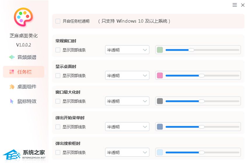 任务栏美化 让任务栏变成透明、自定义背景颜色、增加模糊效果等。