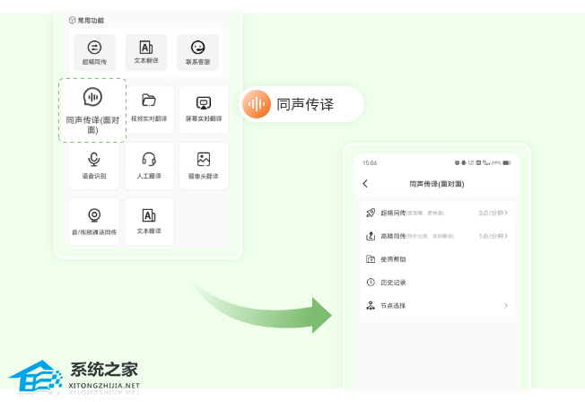 包含同声传译,屏幕实时翻译,语音视频同传,图片文档翻译,电话翻译和人工翻译等主流功能。