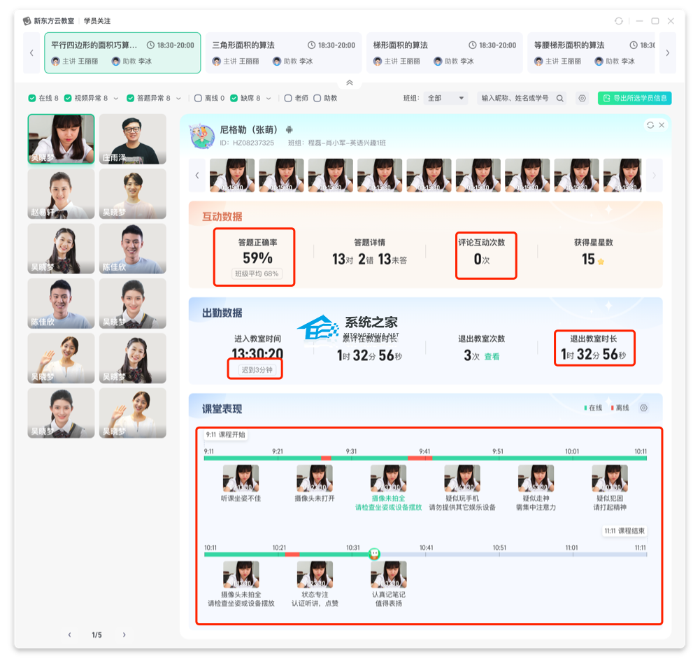 ●新增学员课表表现,分段抓取学生精彩瞬间,还原课堂表现细节。