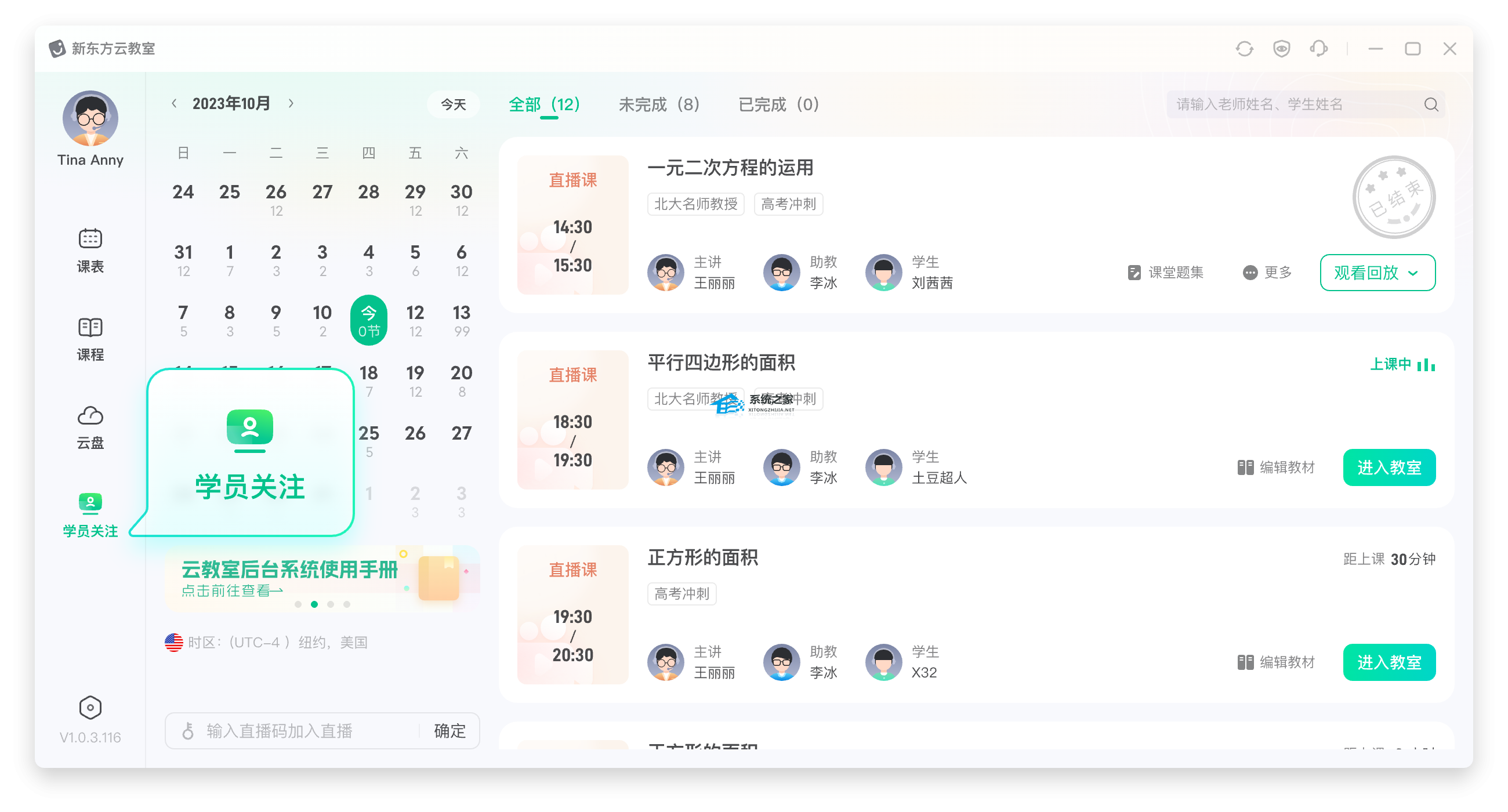 云教室客户端新增学员关注功能,点击学员关注进入页面。目前功能灰度中: