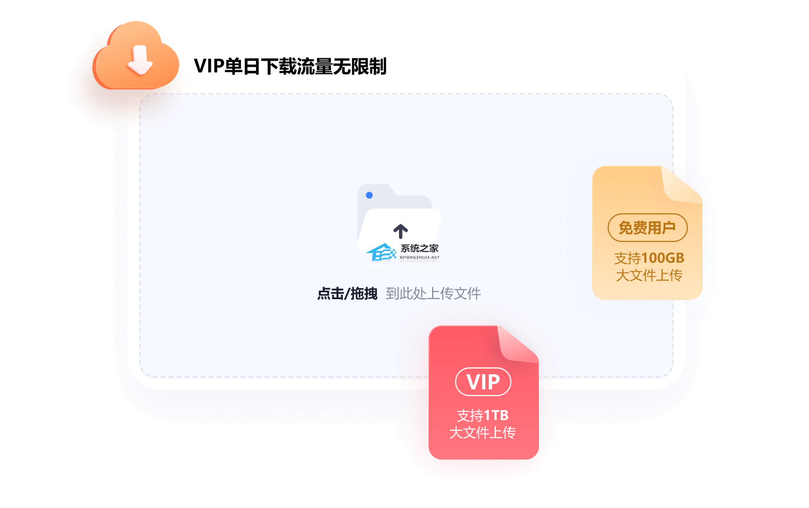 行业领先,免费用户支持100GB大文件上传,VIP会员支持1TB大文件上传,VIP单日下载流量无限制。
