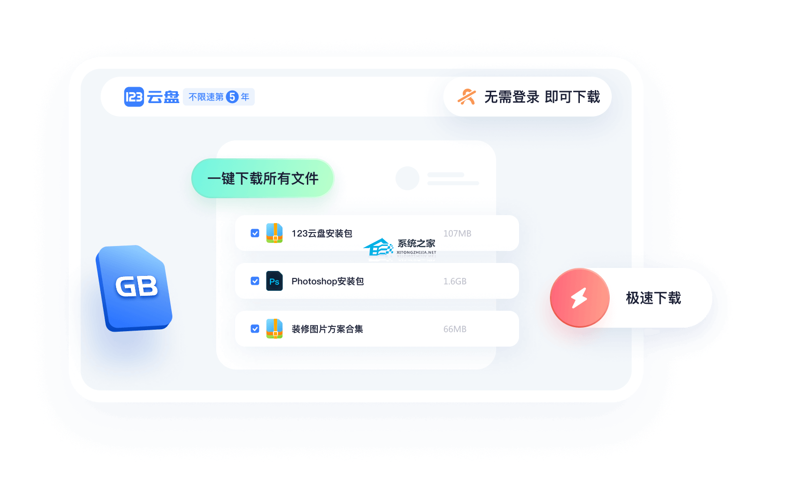 123云盘电脑版提供超大存储空间,免费用户注册即可享受2TB容量,会员更享超大容量。它支持在线预览、文件分享、云同步等功能,且上传下载不限速。此外,123云盘电脑版还拥有强大的自动备份功能,可自动备份桌面、文档、下载文件夹以及QQ、微信等数据,确保用户数据安全无忧。