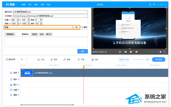 1. 打开EV剪辑,导入需要调整音量的视频。