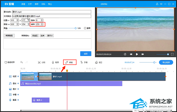 如何调整视频画面的透明度?