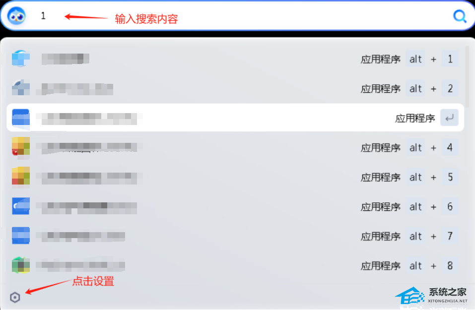 输入搜索内容,如搜索“1”后,左下角点击设置图标。