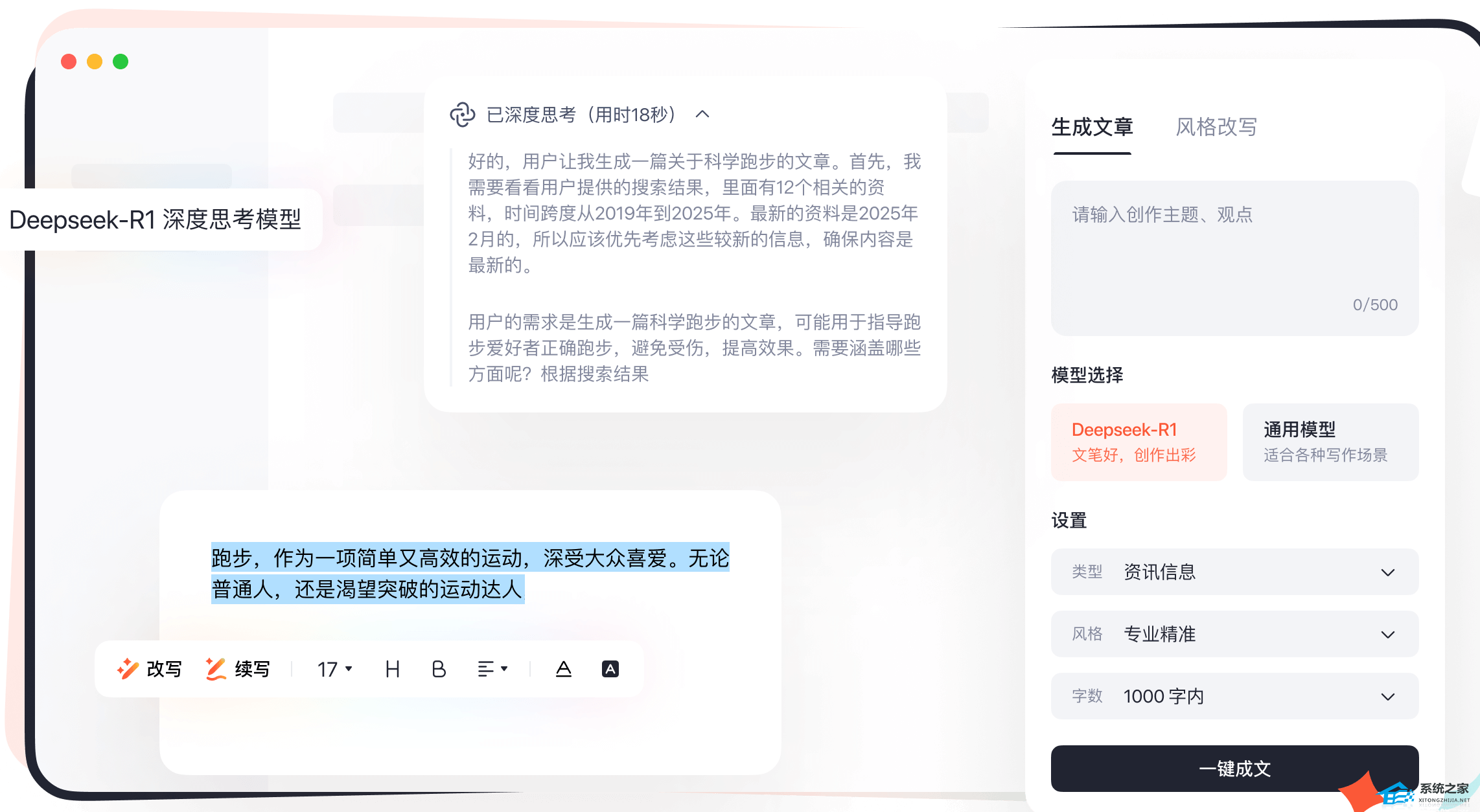 基于通用大模型和Deepseek增强算法,突破创作边界。无论是500短图文,还是2000字的长篇文章,均可一键生成或改写,适配20+风格。