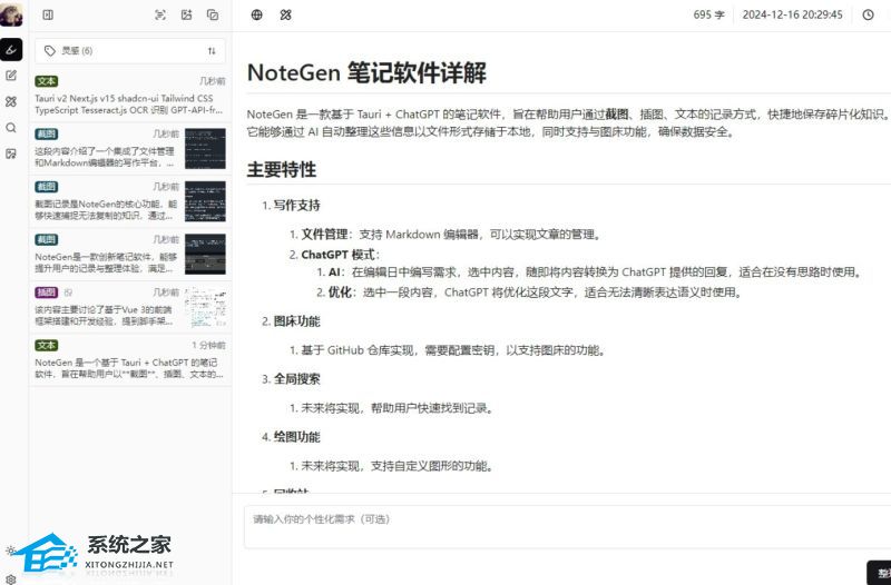 支持截图、插图和文本记录,适合不同场景需求。例如,截图记录结合 OCR 和 ChatGPT,能够从图片中提取文字并生成总结,非常适合处理无法复制的文本信息。