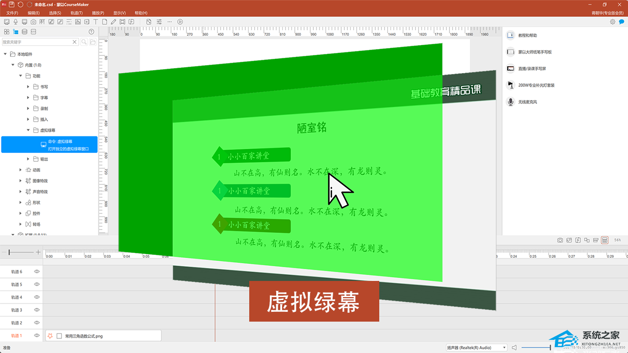 蒙以 CourseMaker 是一款免费高清、无水印、不限时长的对象式屏幕录制和视频编辑软件。现已更新至 7.5.1 版本,此次更新修复了多项问题,包含自定义页面设置尺寸、英伟达显卡硬件编码偏色、搜索方式添加的组件不可保存等问题。蒙以 CourseMaker 支持屏幕录制、绿幕抠像、视频剪辑等多项功能,全方位满足用户的使用需求。