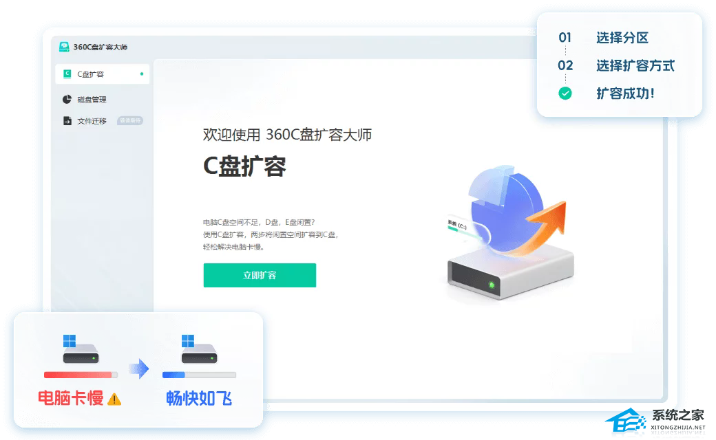 扩容电脑C盘空间,缓解电脑卡慢等问题。