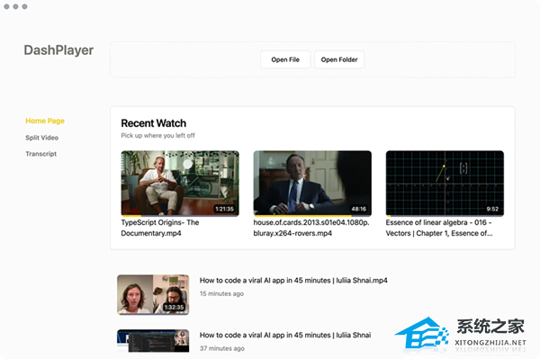 支持文件/文件夹 观看一个视频就用文件打开,一系列视频就用文件夹打开,DashPlayer 都能支持。