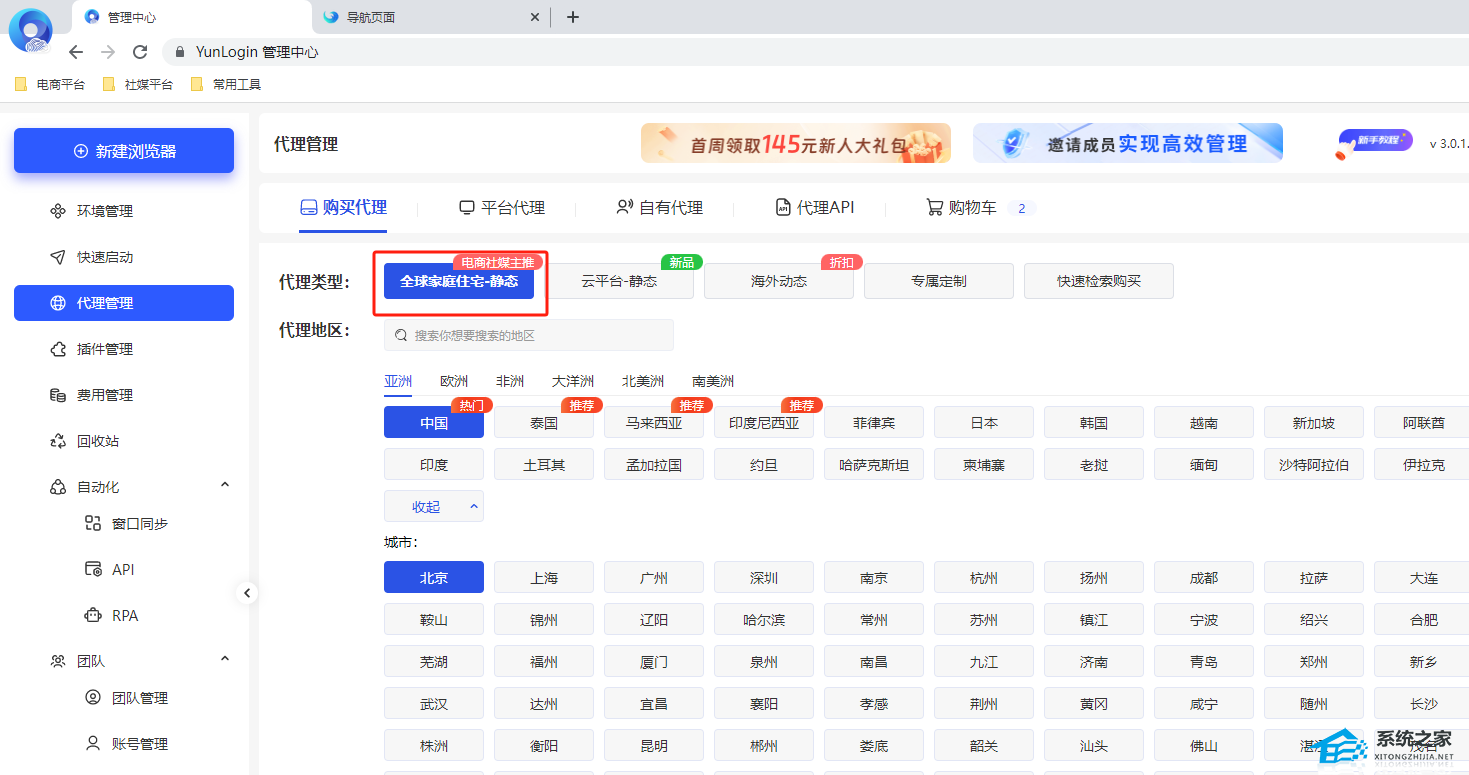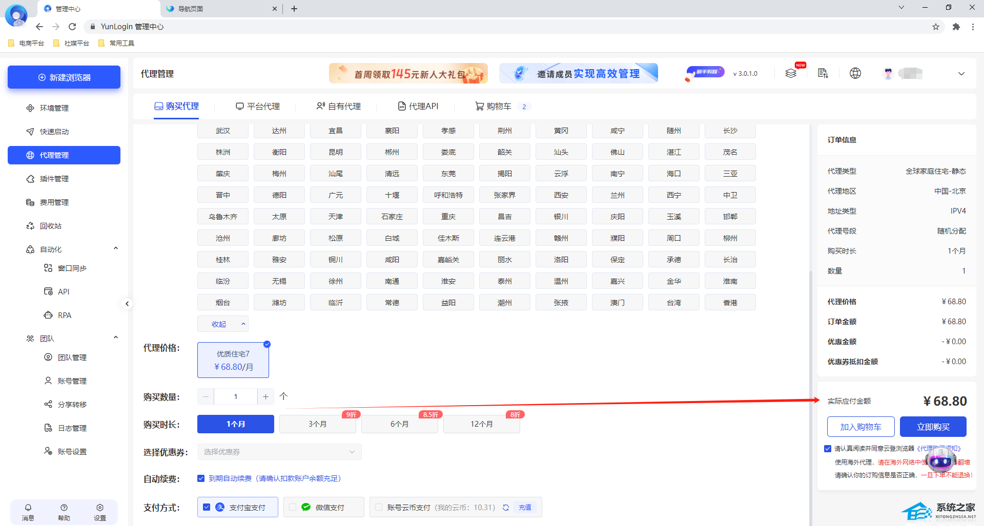 2. 购买代理页面,选择想要购买的代理。