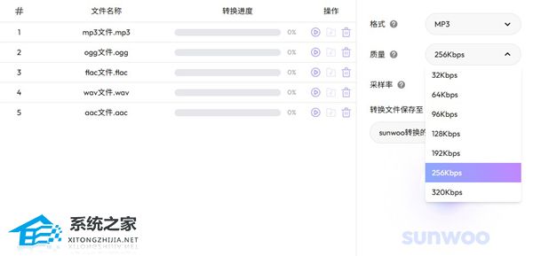 sunwoo 音频格式转换器支持对音频进行精细的调整,包括比特率、质量、采样率等参数,满足专业音频编辑需求。注意:如果原音频文件比特率较低,提高质量不会改善音质。