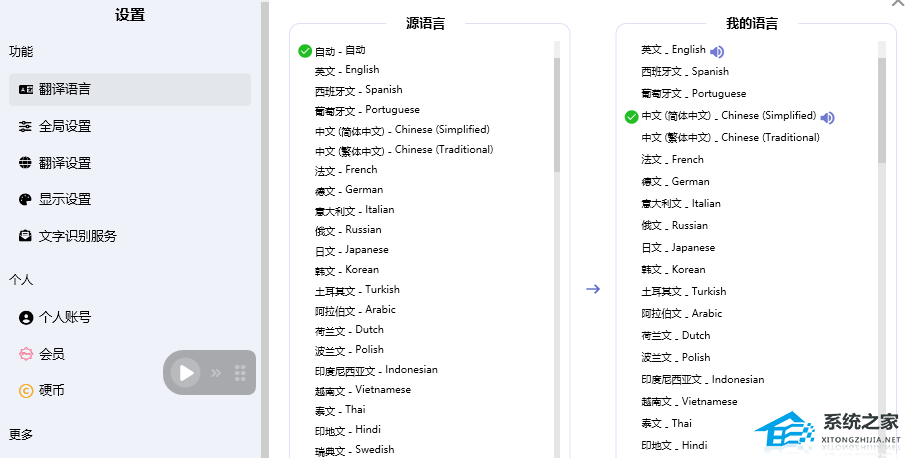 点击翻译目标语言按钮,选择你想要翻译成的语言。