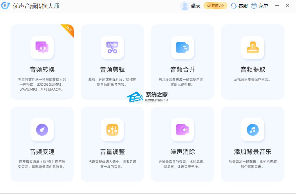 优声音频转换大师是一款功能强大的音频处理软件,支持 MP3、WAV、FLAC 等多种音频格式,可一键轻松转换,且支持批量操作,大大提升工作效率。优声音频转换大师还提供剪辑、合并等音频编辑功能,用户无需切换软件即可完成简单处理。软件界面简洁直观,为用户提供高效、便捷的音频格式转换与编辑体验。
