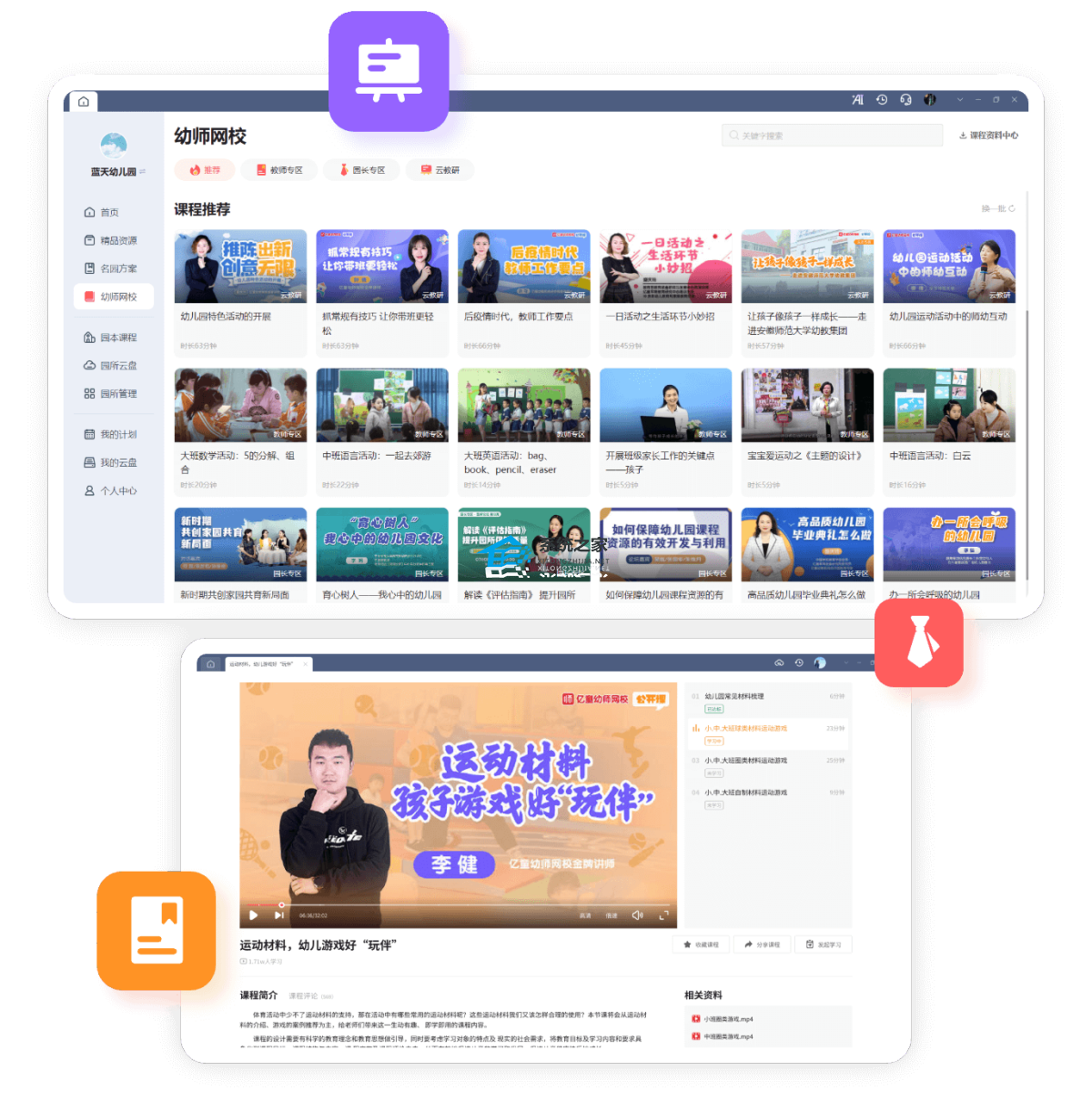 针对园长、新手教师、熟手教师提供不同的培训方案和优质的视频资源。