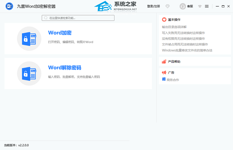 1. 九雷 Word 加密解密器可以快速对多个文档加密,安全保护重要文件。