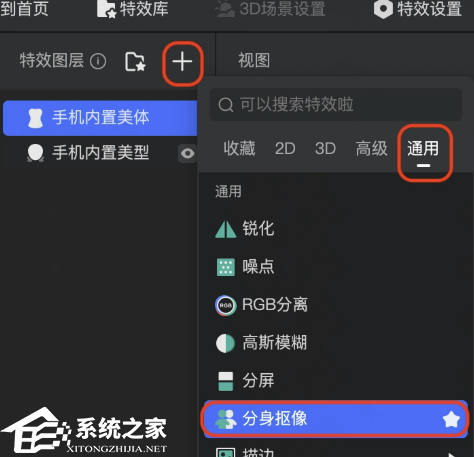 在弹窗内选择「通用」类别下的「分身扣像」。