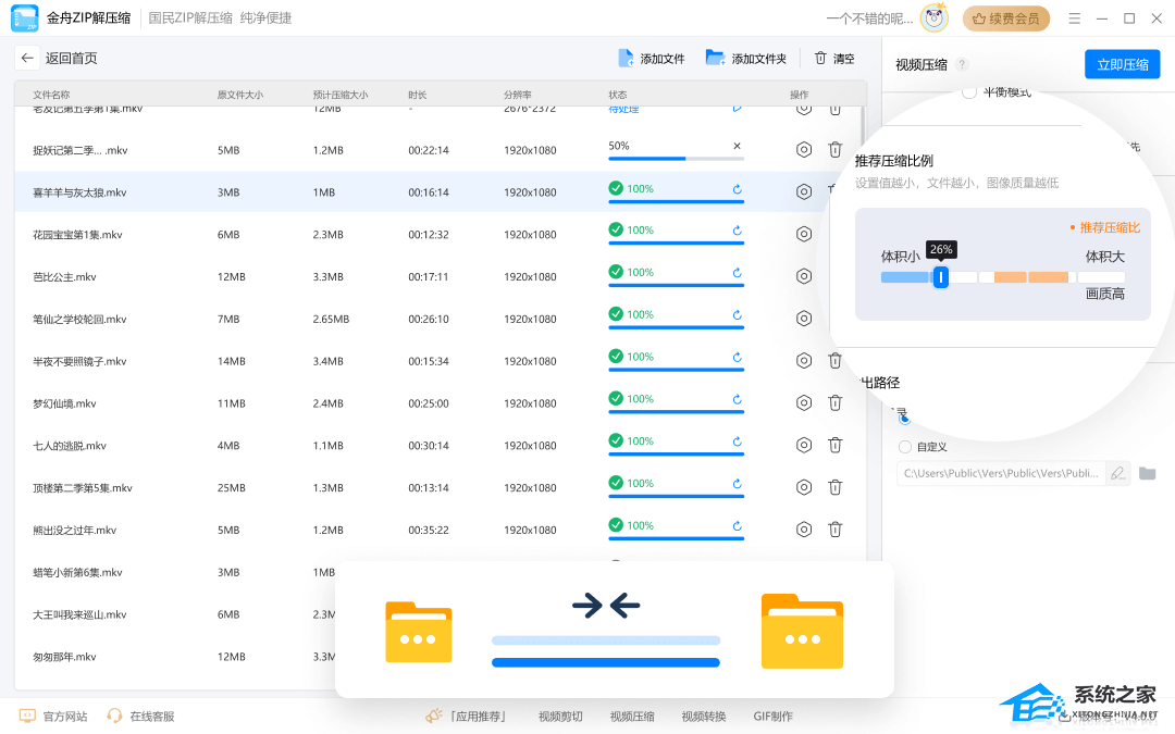 汇帮超级压缩器官方安装版是一款专业的压缩软件,该软件不仅支持视频、图片、PDF、Word和PPT压缩等多种格式压缩,而且压缩速度更快,轻松提高效率,让工作变得更简单。此外界面也十分的简洁。有...
