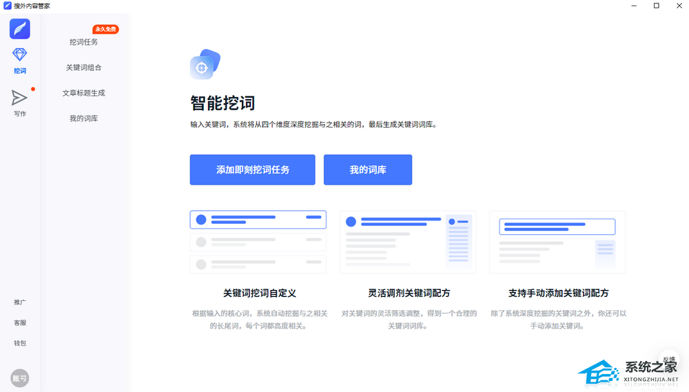 搜外内容管家是一款十分好用的内容管理工具,它支持关键词挖掘、AI 创作、文章发布及外链发布等功能,为用户提供一站式服务。用户只要设置核心关键词,搜外内容管家就会自动根据核心关键词挖掘更多的长尾词,并且只保留和核心词相关的词。同时,它还支持一键发布文章至多个平台,内容分发效率更高。