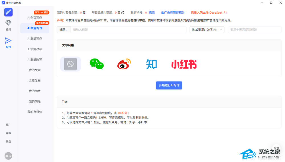 绑定你的网站 / 百家号/知乎等自媒体平台,软件就会自动将创作出来的文章发布到你的网站 / 自媒体平台。解决了文章发布的问题,从而减轻文章发布工作。