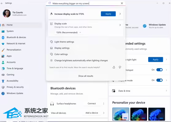 其次,新版增强“设置中智能体”(Agent in Settings)功能,用户在搜索设置项后,系统不仅会提供更多相关结果,还能直接在搜索浮窗中通过 AI 智能体调整参数。