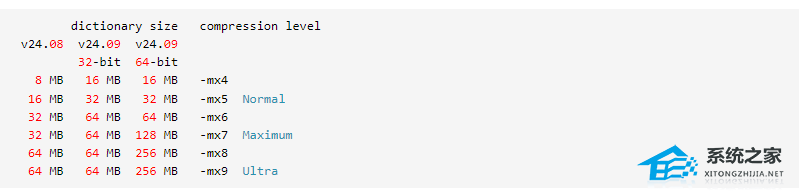 增加LZMA / LZMA2压缩方法的默认字典大小值,32 位版本LZMA / LZMA2的默认字典大小值不超过64MB。