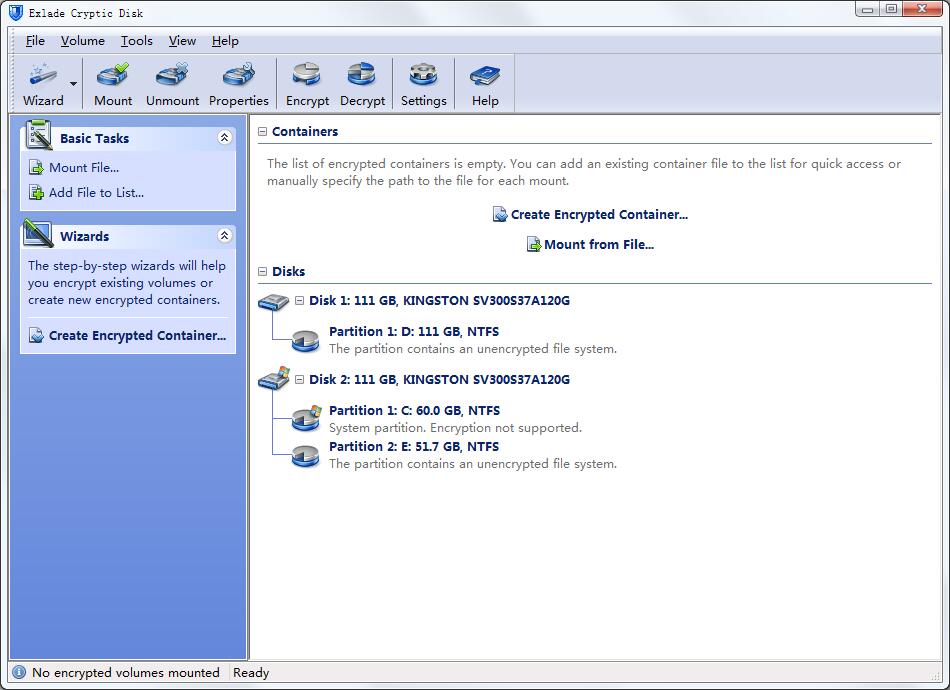 Exlade Cryptic Disk是一款相当不错的磁盘加密工具,软件里面的功能是相当的专业,使用也受到了许多用户的喜爱,让您轻松的即可完成傻瓜式的操作,只需要根据软件提供的向导即可完成使用,可以通过您需要使用的加密硬盘、硬盘的分区进行安全的加密,软件拥有目前比较先进的AES 256 位加密算法,让您的加密轻松的即可得到不一样的操作。